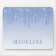 Modern Elegant Fashionable and Trendy Dusty Blue Glitter Mouse Pad personalised with your Name. Dripping Glitter with sparkles.
