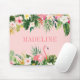Modern Elegant Watercolor Pink Tropical Floral Mouse Pad includes flowers palm leaves. Your name in a fashionable script.
