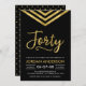 Modern 40th Birthday invitation featuring an elegant geometric chevron and the word "Forty" in faux gold against a black background. Card includes a matching pattern back side. Check out matching items here http://www.zazzle.com/collections/modern_faux_gold_chevron_celebration_collection-119531050277382712?rf=238364477188679314