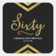 This elegant square sticker features a modern geometric chevron and the word "Sixty" in faux gold against a black background. It's great for a 60th birthday celebration. Check out matching invitations and items here http://www.zazzle.com/collections/modern_faux_gold_chevron_celebration_collection-119531050277382712?rf=238364477188679314