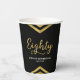 These chic paper cups feature elegant geometric chevron and the word "Eighty" in faux gold foil against black background. It's great for a 80th birthday celebration.