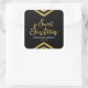 This modern square sticker features an elegant geometric chevron and the word "Sweet Sixteen" in faux gold against a black background. Check out matching invitations and items here http://www.zazzle.com/collections/modern_faux_gold_chevron_celebration_collection-119531050277382712?rf=238364477188679314