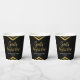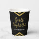 These modern paper cups feature an elegant geometric chevron design and the word "Girls' Night Out" in faux gold foil against a black background; perfect for a Bachelorette Party.