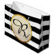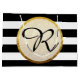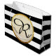 Modern Faux Gold Foil Black White Stripe Monogram Large Gift Bag