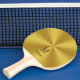 Brown text appears on this faux gold ping pong paddle. You can edit the text to show an appropriate monogram and name. The gold look is artwork.