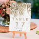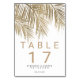 Modern simple faux gold palm tree watercolor with simple typography, a trendy and tropical wedding table number theme on palm tree leaf.