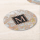 Modern Faux Rose Gold Marble Swirl Monogram Round Paper Coaster