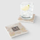 Modern Faux Rose Gold Marble Swirl Monogram Stone Coaster