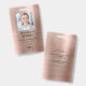 Custom Modern Faux Rose Gold Metallic Corporate Photo ID Badge. Personalise this corporate ID card badge with your employees name, position, photo and your company logo on the front side and your custom info text on the back side. The employee photo works best in square format. Your logo works best as a PNG square format with transparent background. The placeholder logo you see on the badge will be completely replaced with your own logo design.