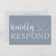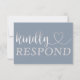 Simple and elegant RSVP card with large calligraphy, with heart detail. Text in faux metallic silver on a dusty blue background. All you need to do is change the date. Please see other items in this collection.