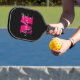 Create pickleball equipment with your custom monogram and name on it. These feminine and fun Pickleball paddles feature hot pink monogram initial and your first name in white on a black background.