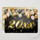 Modern Elegant Festive Black and Gold Balloon Confetti 2025 Happy New Year Party Merry Christmas Gold Foil Holiday Card.