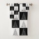Modern Festive Black White Christmas Tree Pattern Bath Towel Set