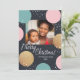 A modern Christmas card with colourful festive - gold glitter, pink and blue dots. The phrase "Merry Christmas" is set in an whimsically handwritten font. Personalise this holiday card with your photo and text.