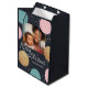 A modern Christmas gift bag with colourful festive - gold glitter, pink, and blue - dots. The phrase "Merry Christmas" is set in an whimsically handwritten font. Personalise this Christmas gift bag with your photo and text.
