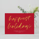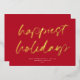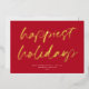 This modern yet festive business holiday card features a large calligraphy script "happiest holidays" in raised gold foil over a red background. The back of the card is also red. **ALL colours are customisable - background colour, text colour, even the foil. Make a fabulous impression on your clients and business contacts with a real foil holiday card this year!