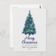 Hand painted in watercolors, single conifer tree on light grey background, with editable season greetings text and names, bringing festive spirit and good wishes