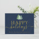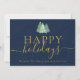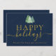 Modern Festive Trees Logo Navy Blue Gold Business Holiday Card