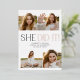 This modern fete foil she did it photo graduation announcement card is the perfect simple high school or college grad announcement. The design features elegant boho typography with a touch of sophisticated style in minimalist black and white with luxurious pressed rose gold foil accents.