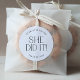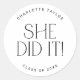 This modern fete minimal she did it graduation sticker is perfect for a simple grad party. The design features elegant boho typography with a touch of sophisticated style in minimalist black and white.