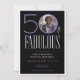 Modern Fifty Fabulous Purple White Photo Birthday Invitation
