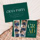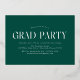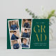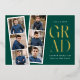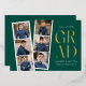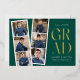 Trendy graduation party invites featuring a filmstrip with 6 square photos of the graduate. "Grad" is displayed in modern gold foil lettering with a green background. Personalise the front of the multi-photo graduation party invite by adding the graduate's name, school name, and graduation year. The invite reverses to display your graduation party details in white lettering with a green background. The foil graduation party invite is perfect for high school and college graduates.