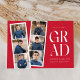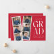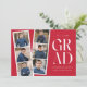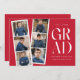 Trendy graduation announcements featuring a filmstrip with 6 square photos of the graduate. "Grad" is displayed in white modern lettering with a red background (editable colour). Personalise the front of the multi-photo graduation announcement by adding the graduate's name, school name, and graduation year. The announcement reverses to display additional text such as graduation details, future plans, party information, etc. The stylish graduation announcement is perfect for high school and college graduates.