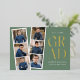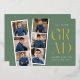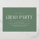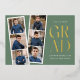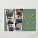 Trendy graduation party invites featuring a filmstrip with 6 square photos of the graduate. "Grad" is displayed in modern gold foil lettering with a sage green background. Personalise the front of the multi-photo graduation party invite by adding the graduate's name, school name, and graduation year. The invite reverses to display your graduation party details in white lettering with a sage green background. The foil graduation party invite is perfect for high school and college graduates.