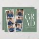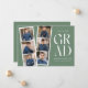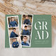 Trendy graduation announcements featuring a filmstrip with 6 square photos of the graduate. "Grad" is displayed in white modern lettering with a dark sage green background (editable colour). Personalise the front of the multi-photo graduation announcement by adding the graduate's name, school name, and graduation year. The announcement reverses to display additional text such as graduation details, future plans, party information, etc. The stylish graduation announcement is perfect for high school and college graduates.