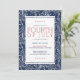 Our patriotic, summery Fourth of July party invitation is perfect for your Independence Day barbeque, pool party or beach bash. Design features a fireworks pattern background in navy blue and white, with dark red and navy text and star accents.