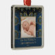 First Christmas as Grandparents or other family member, blue and gold ornament. Classy and stylish modern design featuring gold ornaments set into a pattern.