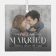 This modern minimalist personalised newlyweds Christmas glass ornament features a photo template with elegant stylish overlay typography “our first Christmas MARRIED,” with name and year.