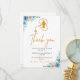 Modern blue watercolor floral first holy communion thank you message card