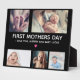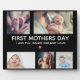 Custom first Mother's Day photo plaque for your family. Featuring 5 pictures and the words "First Mother's Day," a sweet pink heart that can be changed to any colour, a message of I love you, mummy," and a name or names, all of the text is editable in terms of size, font, and colour.