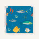 Modern Fish and Seahorse illustrated Pattern Blue Notebook