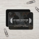 Stand out with this cool and modern business card. Perfect for personal trainers, coaches and other fitness professionals, it features a grey tint over your photo along with a barbell image framing your business name. With room for contact info and more text on the coordinating chic black back, this trainer business card is the perfect design to grab athletes' and potential clients' attention.
