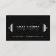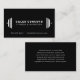 Stand out with this cool and modern business card. Perfect for personal trainers, coaches and other fitness professionals, it features a black background along with a barbell image framing your business name. With room for contact info and more text on the coordinating chic black back, this trainer business card is the perfect design to grab clients' attention.