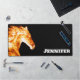 This desk mat design features the bust of a flaming horse in orange, red, and yellow on a black background. Unique and modern. Add a name to personalise it. Makes a great gift for the horse lover in your life. Created by Simply Farmhouse Press.