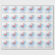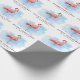 A modern watercolor splash in blue and purple with pink flamingo wearing santa hat wrapping paper. Make it personal by adding your family name.