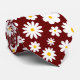 Whimsical modern neck tie featuring scattered flat white daisies with sunflower gold centres over a bold dark burgundy background. Great gift idea.