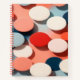 A contemporary abstract design featuring layered circular forms in coral, red, navy, ivory, and soft blue tones, creating depth and a calm yet stylish rhythm—perfect for modern spiral note book.