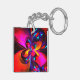 Modern Floral Abstract Art Red Blue Pattern #07 Key Ring
