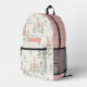 This Modern Floral Backpack features beautiful hand-drawn whimsical peach flowers with a matching peach geometric pattern. Easily personalised with a name for a stylish and customised touch.