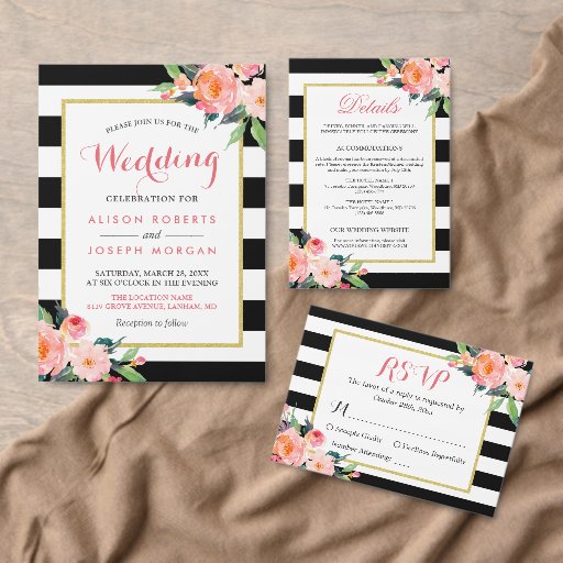 Invitation Suite: Watercolor Floral Black StripesDesigned by Scott C.
