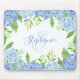 Modern Floral Blue Hydrangea Watercolor Monogram Mouse Pad