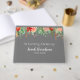 Beautiful and modern memorial / funeral guestbook features top watercolor floral border on dark grey background with white customisable text.
