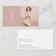 Modern Floral Botanic Line-Art Logo & Photo Blush Business Card