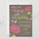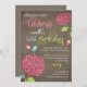 Elegant floral brown background illustrated with bright pink flowers, leaves and swirls. Fancy, modern typography in pink, green and aqua shades. Ideal for 20th birthday; 30th birthday; 40th birthday; 50th birthday; Some elements by BabaPuff. ***PLEASE NOTE that if you change the font or size of the font, it may alter how your invitation prints. It will print the way you see it on your monitor. I will not see your card once you order it, and Zazzle will NOT edit anything (typos, alignment, etc.). Shown here in Basic Paper