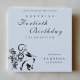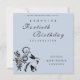 A beautiful modern elegant surprise adult birthday invitation in black and pastel blue with a hand-illustrated bunny and floral silhouette. Customisable for any birthday milestone