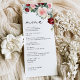 Modern Floral Burgundy Blush Greenery Wedding Menu